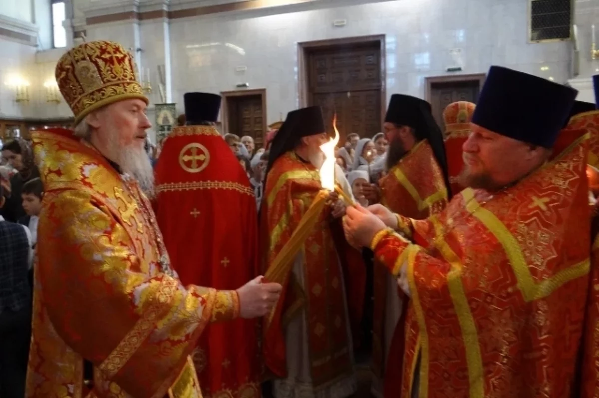 Соборное богослужение в главном соборе Хабаровского края провел митрополит Хабаровский и Приамурский Артемий с участием настоятелей храмов города. После Причастия прошла торжественная встреча Благодатного огня. Прихожане смогли зажечь свечи и лампады от пламени. Частицы святыни увезли в разные приходы епархии, прихожане также смогли взять их домой.