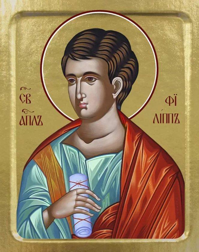 Святой апостол Филипп, уроженец города Вифсаиды в Галилее, глубоко знал Священное Писание и правильно разумел смысл ветхозаветных пророчеств. Он ожидал прихода Мессии. По призыву Спасителя он пошёл за Ним. В Святом Евангелии о нём говорится несколько раз: он привёл ко Христу апостола Нафанаила, Господь спросил его о хлебе для пяти тысяч человек, он привёл эллинов, желавших видеть Христа, и на Тайной Вечери просил показать Отца.