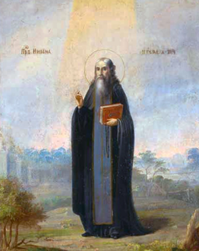 Преподобный Никон был родом из Киева и происходил из знатной и состоятельной семьи. Однако с юных лет он отверг привязанность к земным благам и, придя в Печерский монастырь, добровольно предал себя в полное послушание Христу, отрёкшись от собственной воли и разума ради духовного делания.