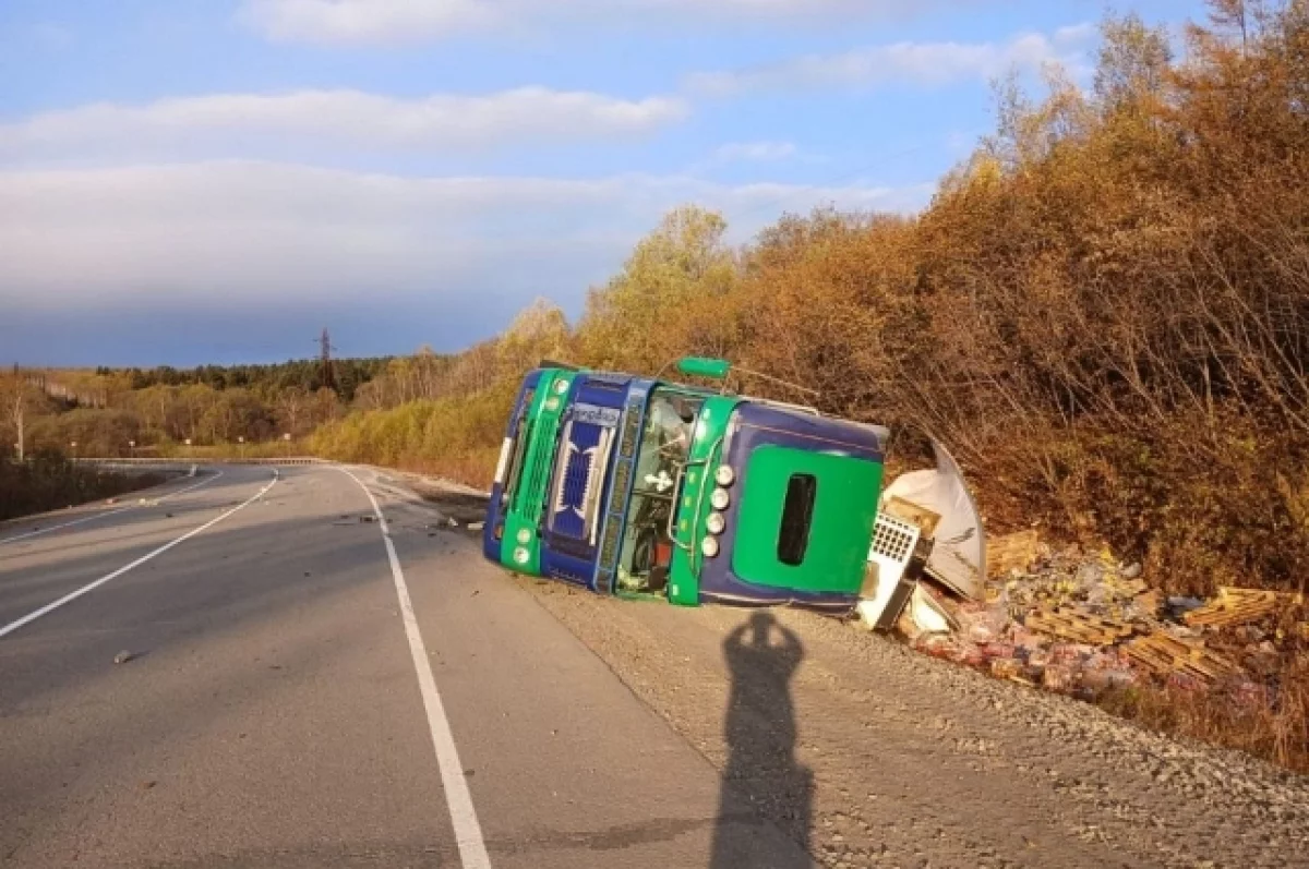 В Ванинском районе Хабаровского края произошла необычная авария — перевернулся большегруз с пивом. Инцидент случился 14 октября на 528 км трассы «Хабаровск—Лидога—Ванино» недалеко от Ванино.