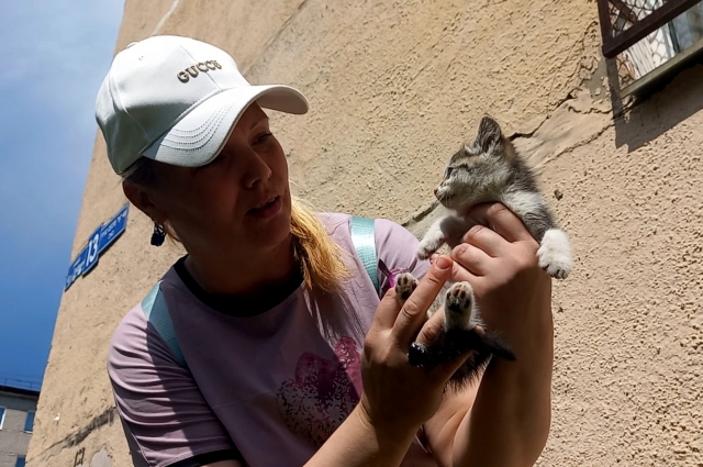 Спасатели передали котенка вызвавшей их женщине, та поблагодарила за помощь и сказала, что давно мечтала о домашнем питомце. Малыша она заберет домой.