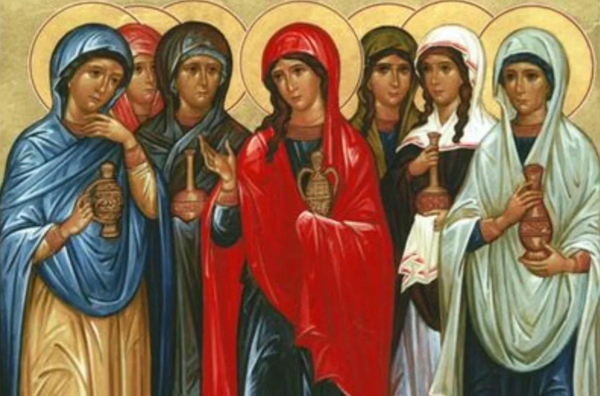 Святые жены-мироносицы — Мария Магдалина, Мария Клеопова, Саломия, Иоанна, Марфа и Мария, Сусанна и иные — сопровождали Спасителя во время Его земного служения, помогали Ему и апостолам, служили «имением своим» и не оставили Его даже в час страданий.