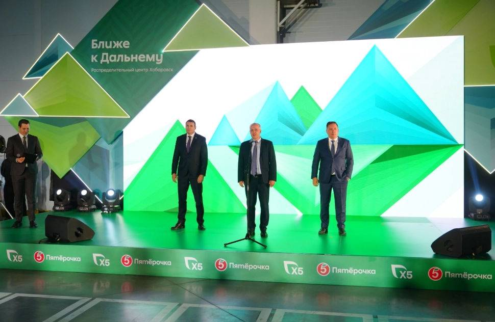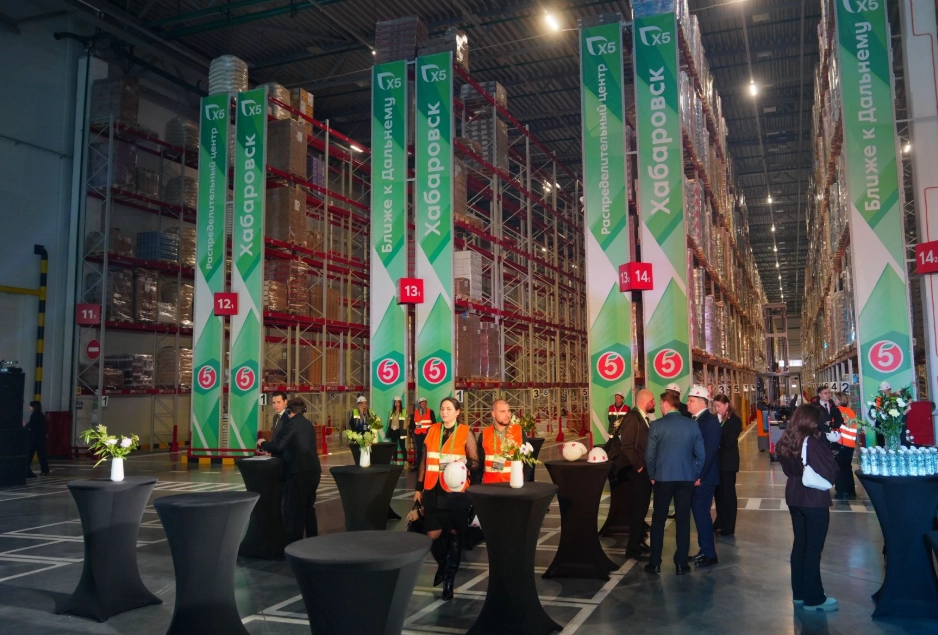 В Хабаровске прошла торжественная церемония открытия первого мультитемпературного логистического центра Х5 на Дальнем Востоке. Новый распределительный центр общей площадью 50 тыс. кв. м, рассчитанный на снабжение 650 магазинов «Пятёрочка» Хабаровского и Приморского края, Амурской области и Еврейской автономной области, а в перспективе — и других дальневосточных субъектов, официально открылся 20 ноября. Главными участниками стали: губернатор Хабаровского края Дмитрий Демешин, первый заместитель председателя Правительства Хабаровского края Сергей Абрамов, а также управляющий директор торговой сети Владислав Курбатов и исполнительный директор территории «Дальний Восток» торговой сети Антон Безрядин.