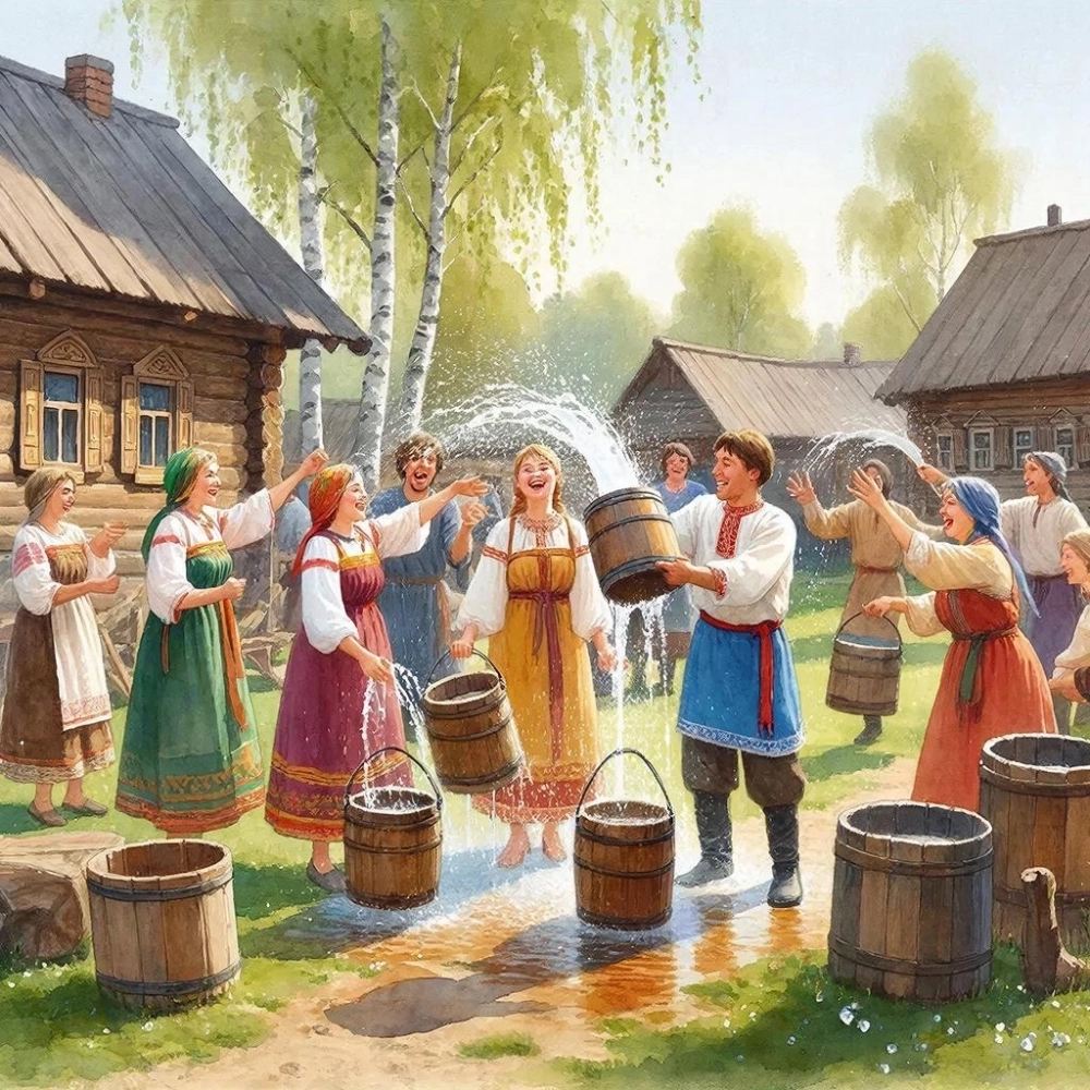 Подобает начать день молитвой и, по возможности, посетить храм. После сего дозволительно в простоте и радости разделить с ближними обычай обливания водою, сопровождая его добрыми словами. Благочестиво раздавать угощения и являть милость, дабы пасхальная радость не замыкалась в пределах дома.