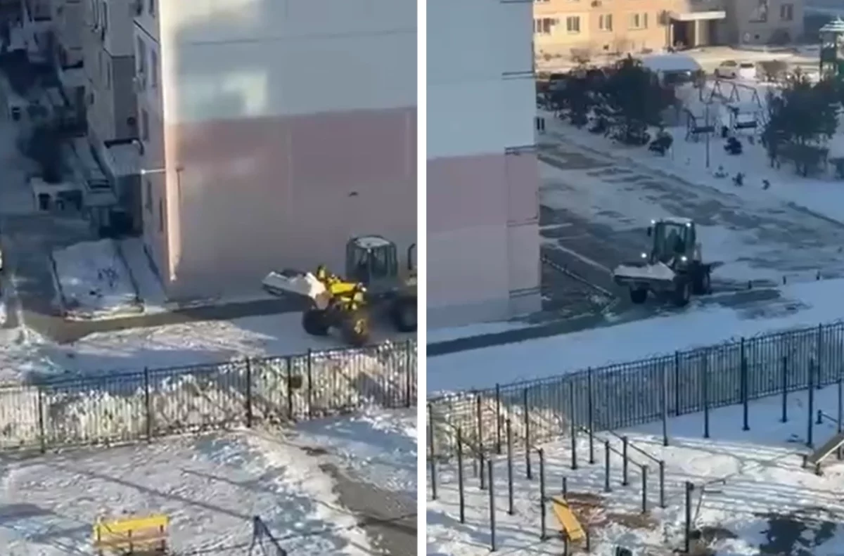 Соцсети: снегоуборщик заблокировал людям выход из двора в Хабаровске