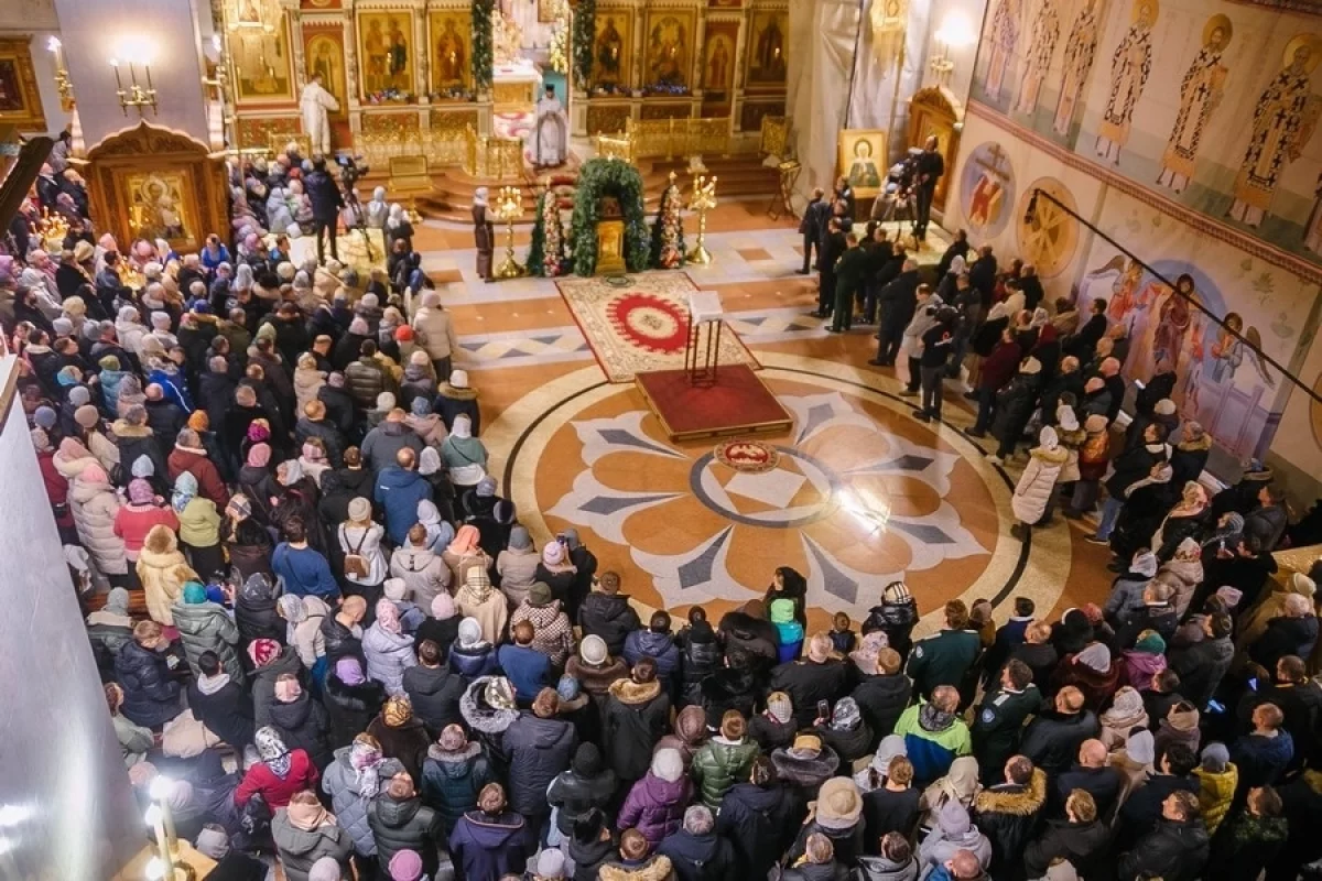 На богослужении присутствовали представители власти, военнослужащие, казаки, участники специальной военной операции. Многие пришли в храм семьями. После причастного стиха Архиерейский хор исполнил рождественские песнопения, а по окончании службы митрополит Артемий поздравил верующих с праздником и призвал молиться за защитников Отечества.