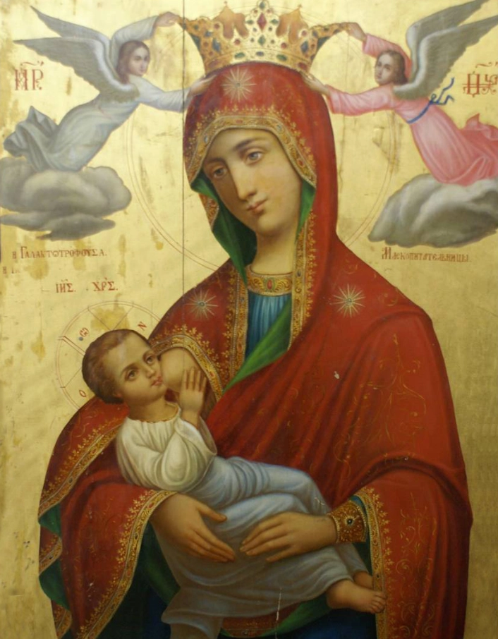 Икона Божией Матери «Млекопитательница» принадлежит к числу самых древних и благоговейных образов византийской школы, исполненных глубочайшего таинственного смысла. Первоначально она пребывала в лавре святого Саввы Освященного близ Иерусалима, где великий подвижник, основатель общежительного иночества в Палестине, хранил её как драгоценное сокровище. При кончине своей в 532 году преподобный Савва предсказал братии, что лавру посетит соимённый ему царственный паломник из Сербии — Савва Сербский, и повелел передать ему в благословение сей чудотворный образ.