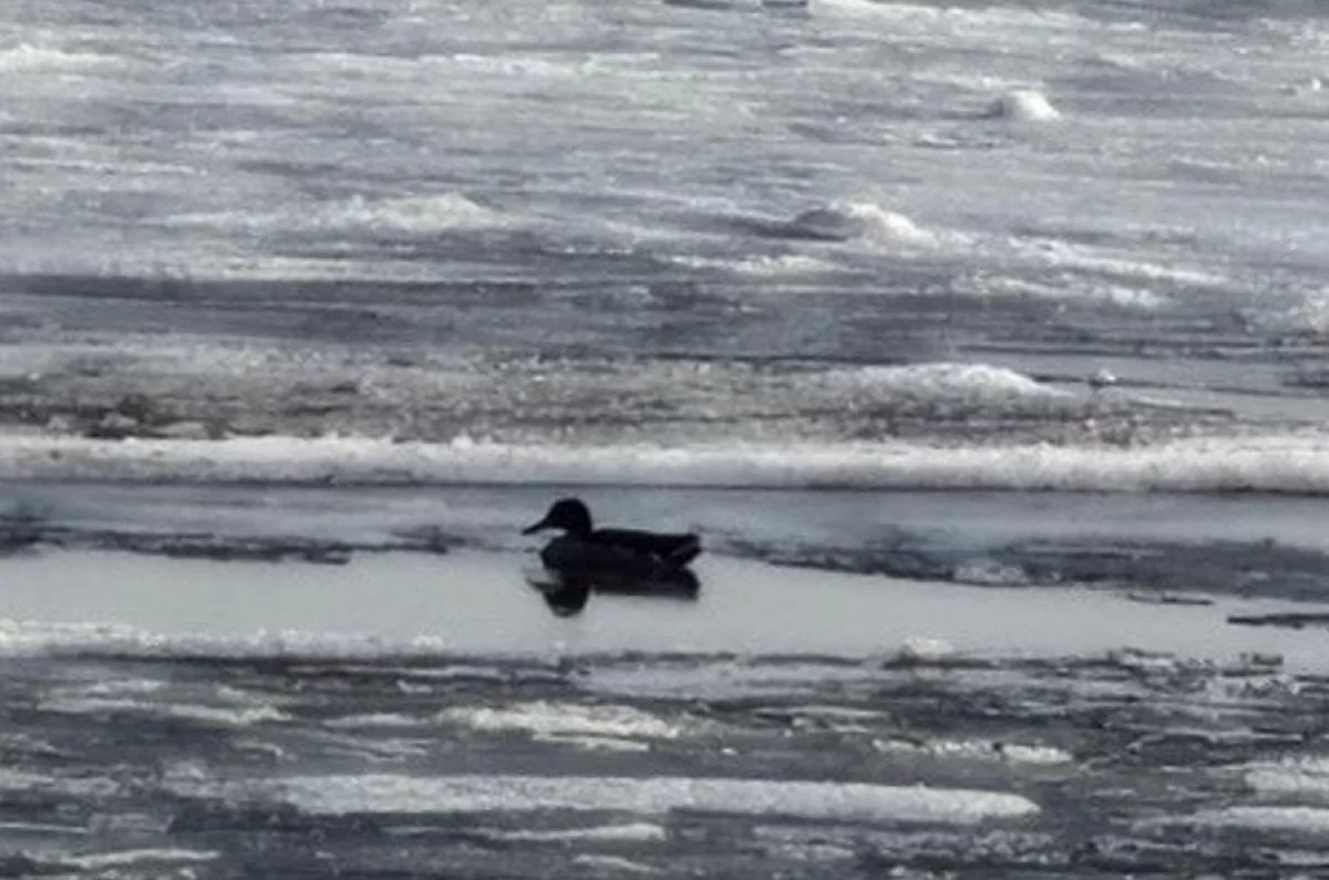 Лёд на реке пока держится, ледохода нет, но весь покров сильно изъеден. Повсюду видны широкие и узкие полыньи с открытой водой, где утки находят себе место. По наблюдениям горожан, в одной из таких промоин возле набережной стадиона имени Ленина сегодня сидело около десятка птиц.