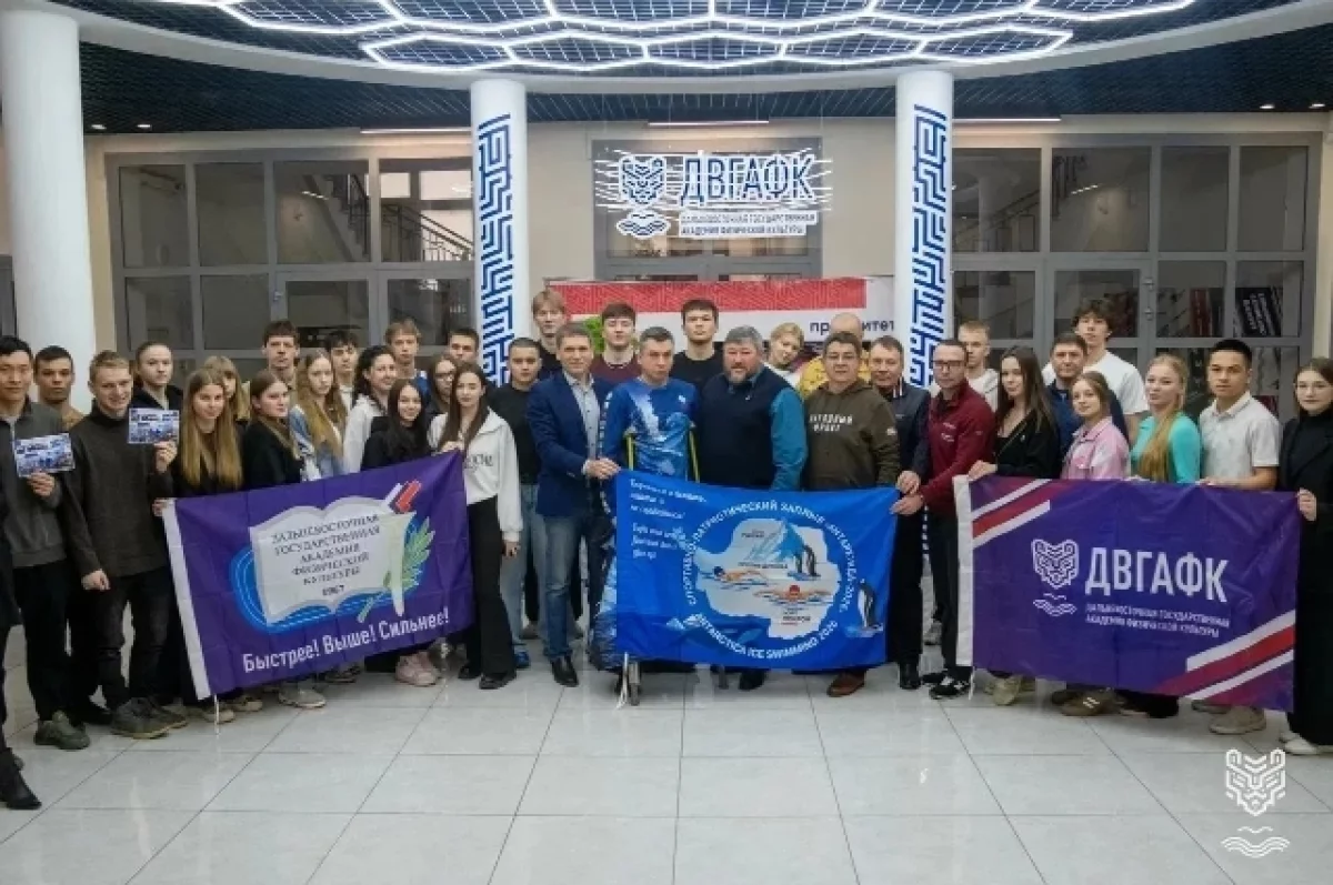 В Дальневосточной государственной академии физической культуры прошла встреча с Виталием Кочневым — десантником и параатлетом, который установил мировой рекорд, проплыв 900 метров в ледяной воде Антарктиды без гидрокостюма. Об этом выдающемся собатии hab.aif.ru писал сразу после установления рекорда.