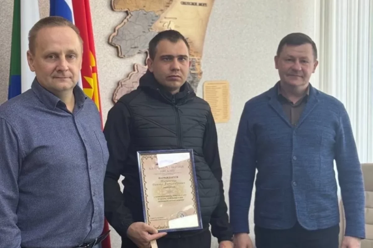 Глава Солнечного округа Хабаровского края Сергей Семёнов провёл встречу с участником специальной военной операции Даниилом Тараненко. Он вручил ему Благодарственное письмо за самоотверженность, мужество и героизм, проявленные во время боевых действий.