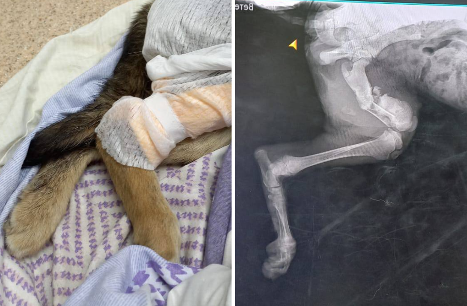 Линси немедленно отвезли к ветеринару, которая поставила ей диагноз: оскольчатый перелом бедренной кости и гниющие раны. Кроме того, пока собака жила на улице, её искусали клещи.